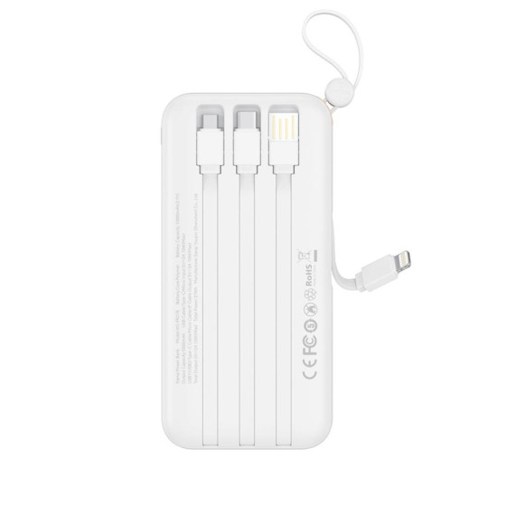 XO Baterie Externa + Cabluri 4in1, USB-A/USB-C/microUSB/Lightning, afisaj LED, 10.000mAh, WHITE